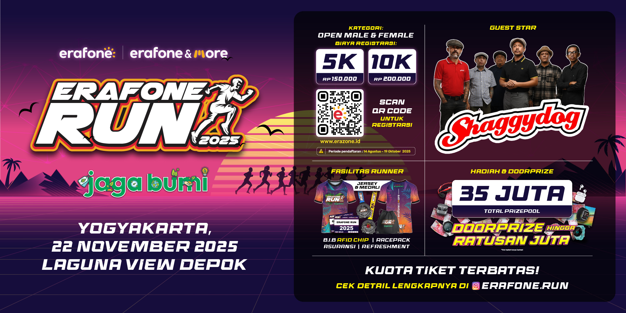 Sebagai bentuk nyata atas dukungan kami kepada perkembangan olah raga di Indonesia, erafone berinisiasif kembali menyelenggarakan Erafone Run 2025. Event ini merupakan Fun Run yang dilaksanakan di Jawa Tengah, Yogyakarta dan Jawa Barat secara estfet dimana secara skala besar akan berlangsung di Yogyakarta dengan target 4.000 peserta.